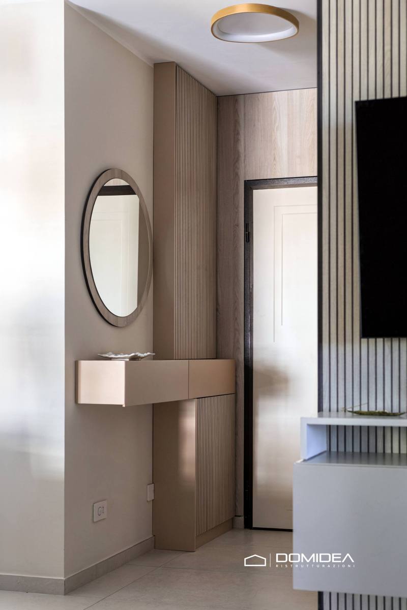 Il progetto di ristrutturazione completa dell’appartamento nasce da un’idea precisa: creare ambienti minimalisti ma accoglienti, dove materiali naturali e palette cromatiche delicate generano un’atmosfera elegante e rilassante.